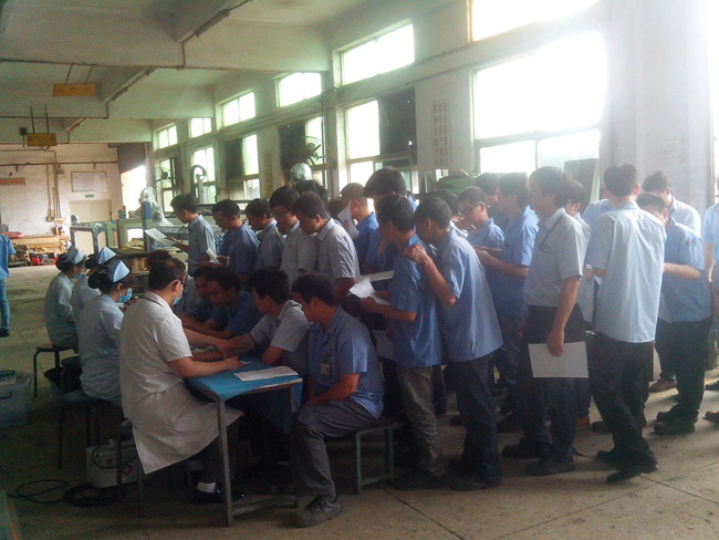 近日公司組織了全體員工的年度體檢活動,把關愛員工身體健康的措施進一步落實。醫(yī)院體檢車直接開到公司大院內對全體員工進行體檢。當員工井然有序地排隊抽血、拍片、查血壓等項目時,也深深體會到公司對他們的呵護。相信榮德公司的全體伙伴能夠珍惜這份工作,在工作當中努力付出,為客戶提供高品質、高性價比的噴涂機器人、自動化生產線,最大限度地達到客戶滿意。