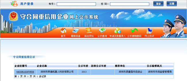 近日,廣東省工商行政管理局向社會公示了全省“守合同重信用”企業(yè)名單,深圳市榮德機器人科技有限公司喜獲上榜,首次榮獲該榮譽稱號。