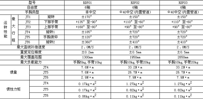 三、榮德噴涂機(jī)器人的技術(shù)參數(shù)