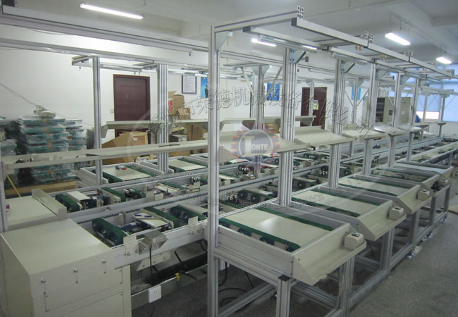 7)把工件放在工裝板上,啟動(dòng)按鈕,工裝板隨流水線流到下一工序;